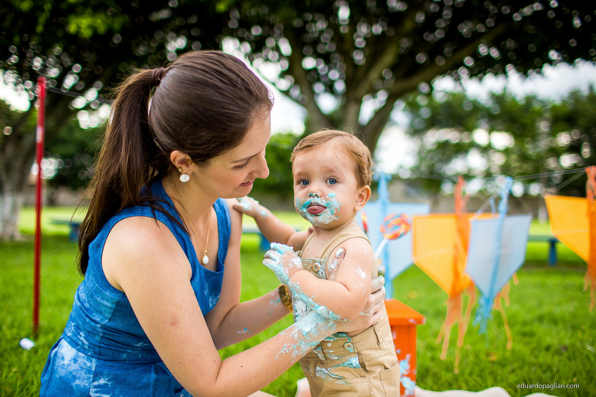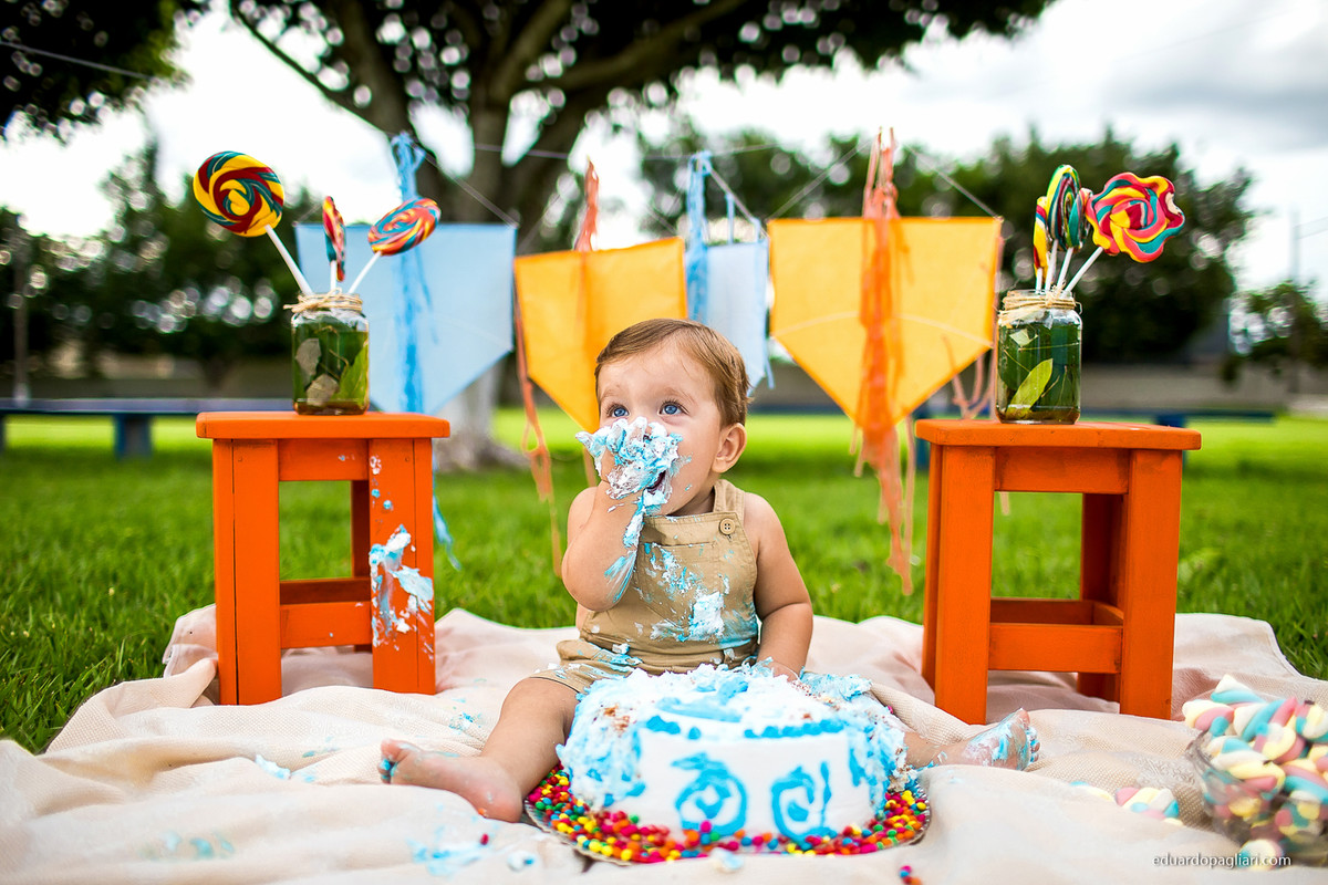 Em uma tarde de tempo nublado corremos contra a chuva mas no fim deu tudo certo! Uau! que fotos lindas neste smash the cake!