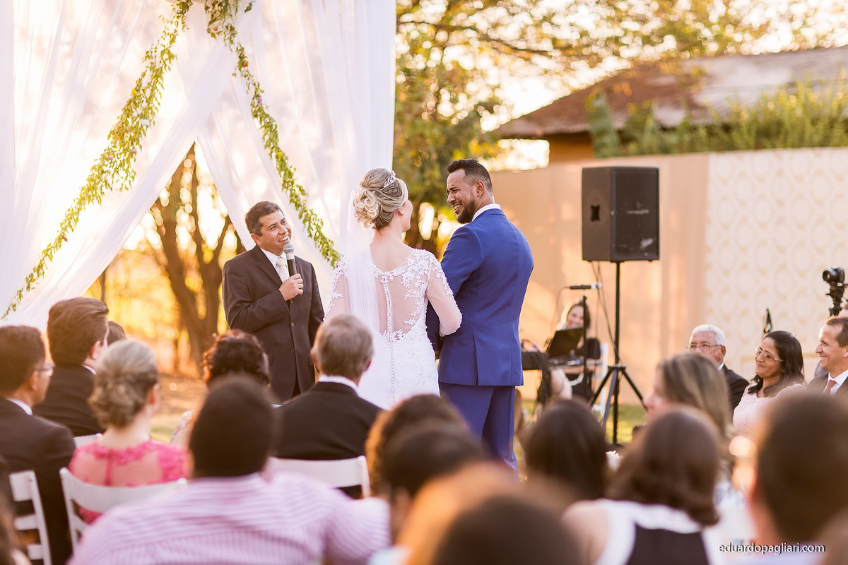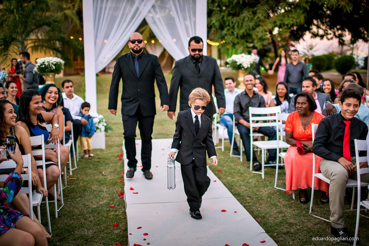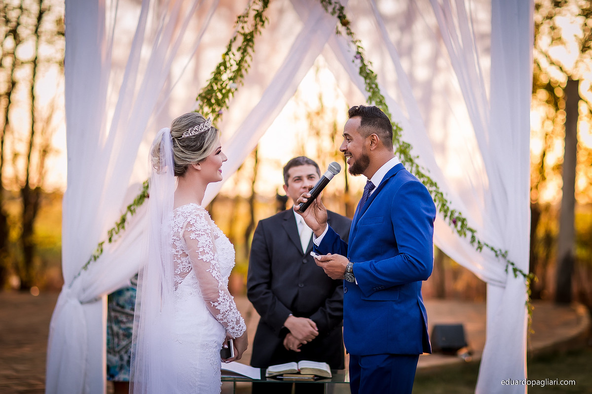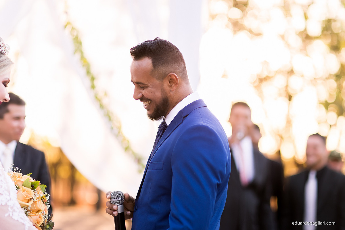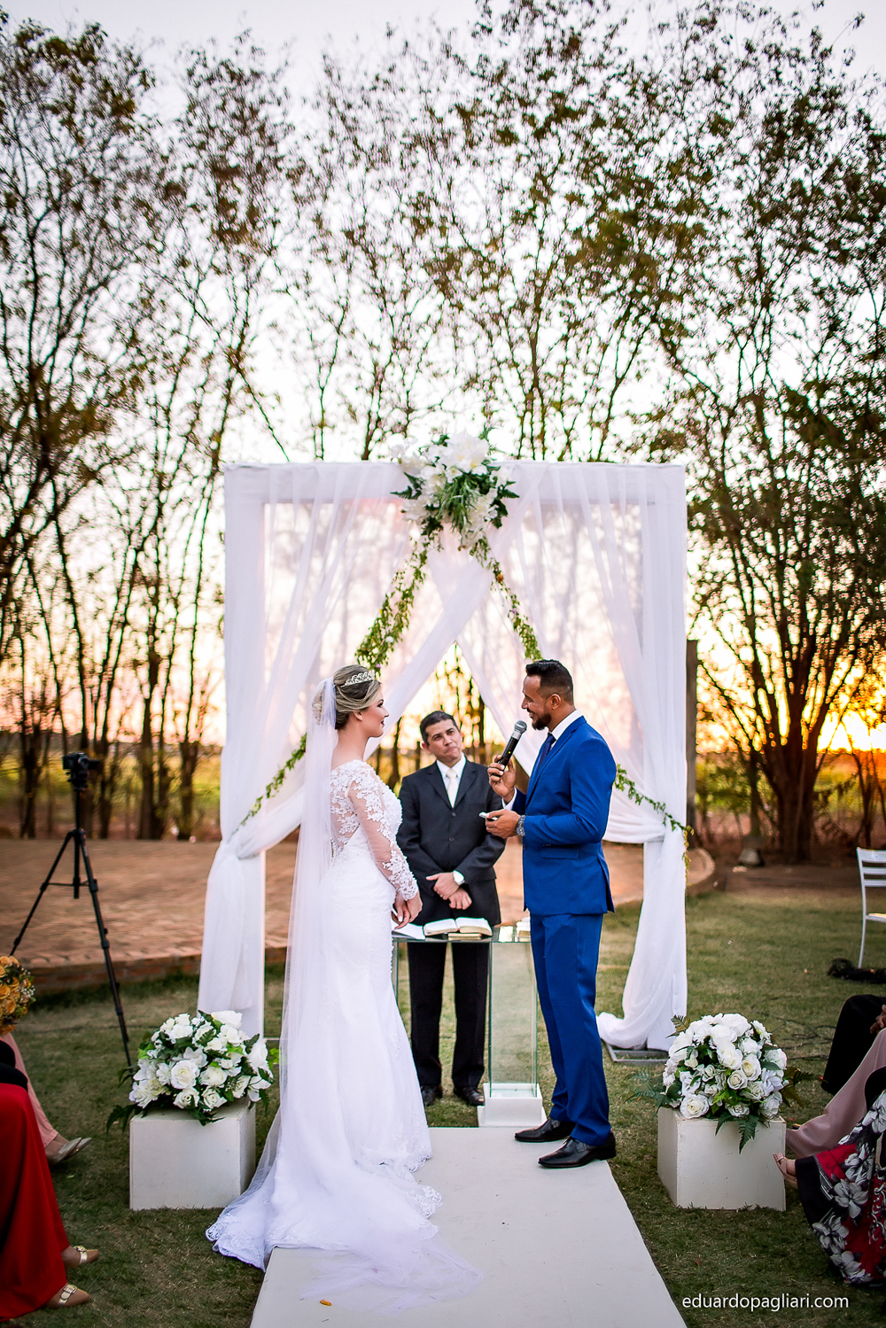 Ao ar livre, por do sol e com um clima rustico já seria um casamento perfeito, mas teve ainda mais, muito mais! Os votos sendo preparados pela noiva antes da cerimônia, musica especial cantada pelo noivo, as alianças trazidas por agentes secretos ao som de missão impossível, uau! Mas fora isso o que pairou pelo ar foi o sentimento que os dois conseguiram expressar um pelo outro, achei incrível..