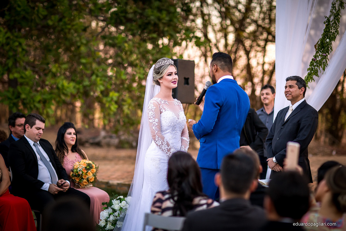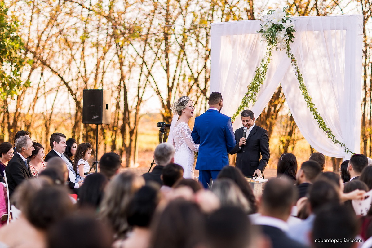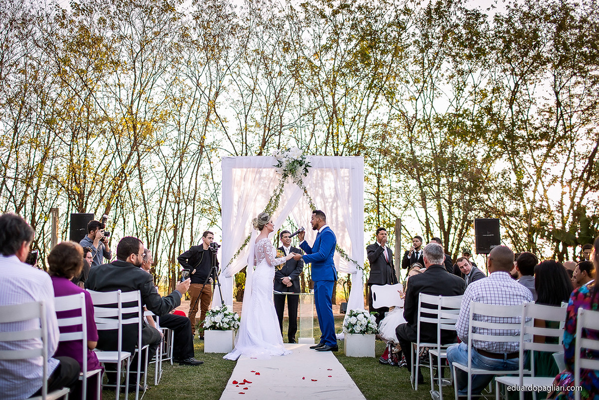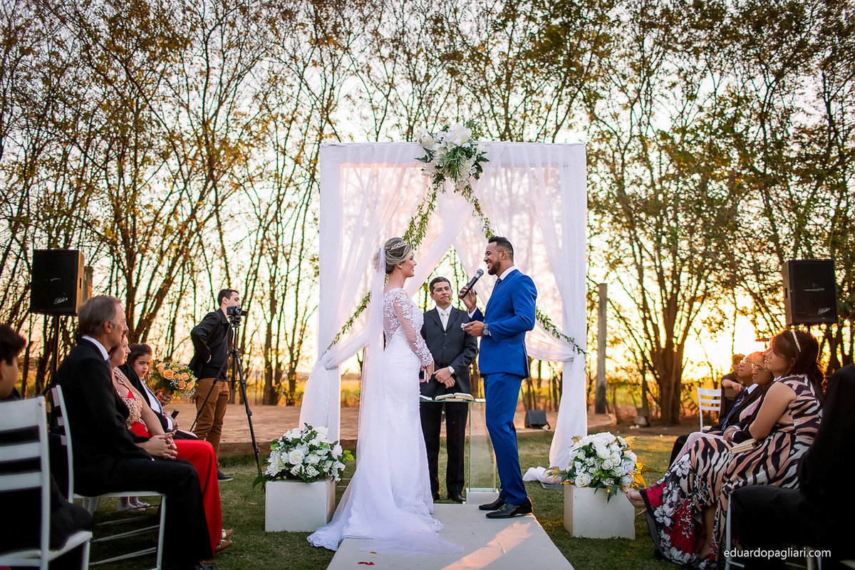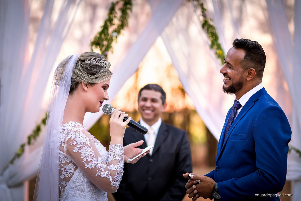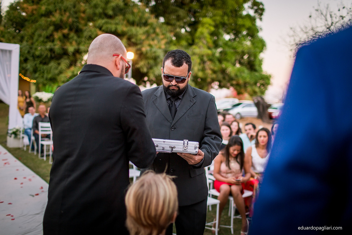 Ao ar livre, por do sol e com um clima rustico já seria um casamento perfeito, mas teve ainda mais, muito mais! Os votos sendo preparados pela noiva antes da cerimônia, musica especial cantada pelo noivo, as alianças trazidas por agentes secretos ao som de missão impossível, uau! Mas fora isso o que pairou pelo ar foi o sentimento que os dois conseguiram expressar um pelo outro, achei incrível..