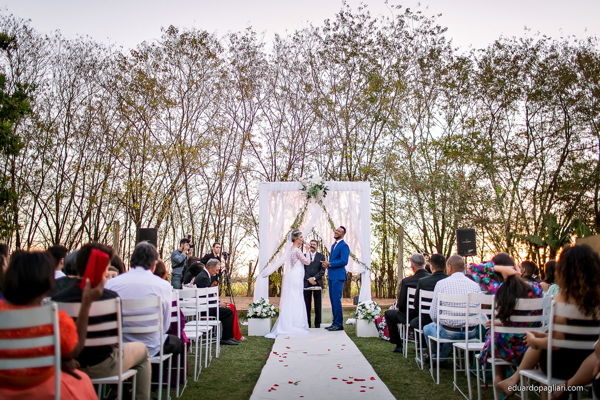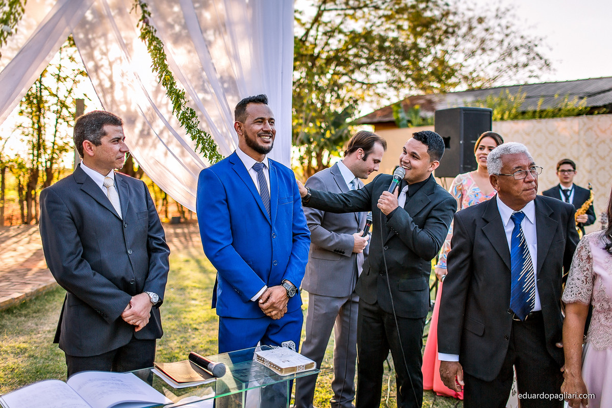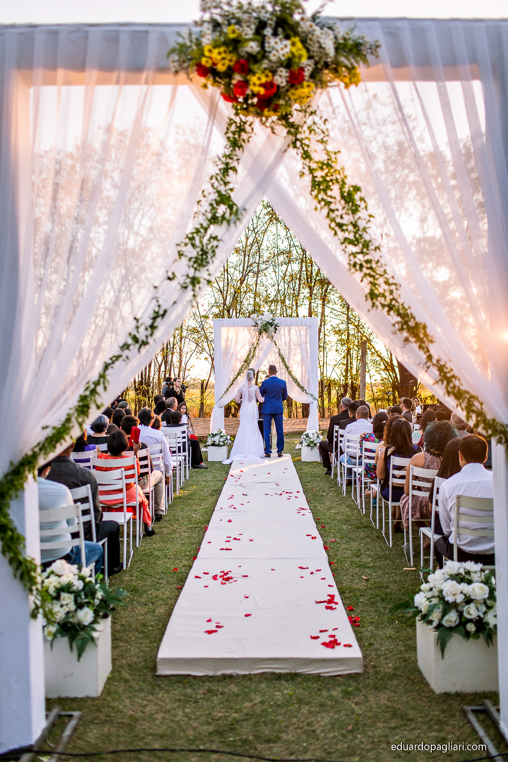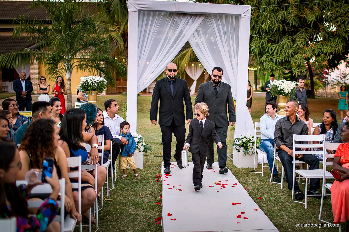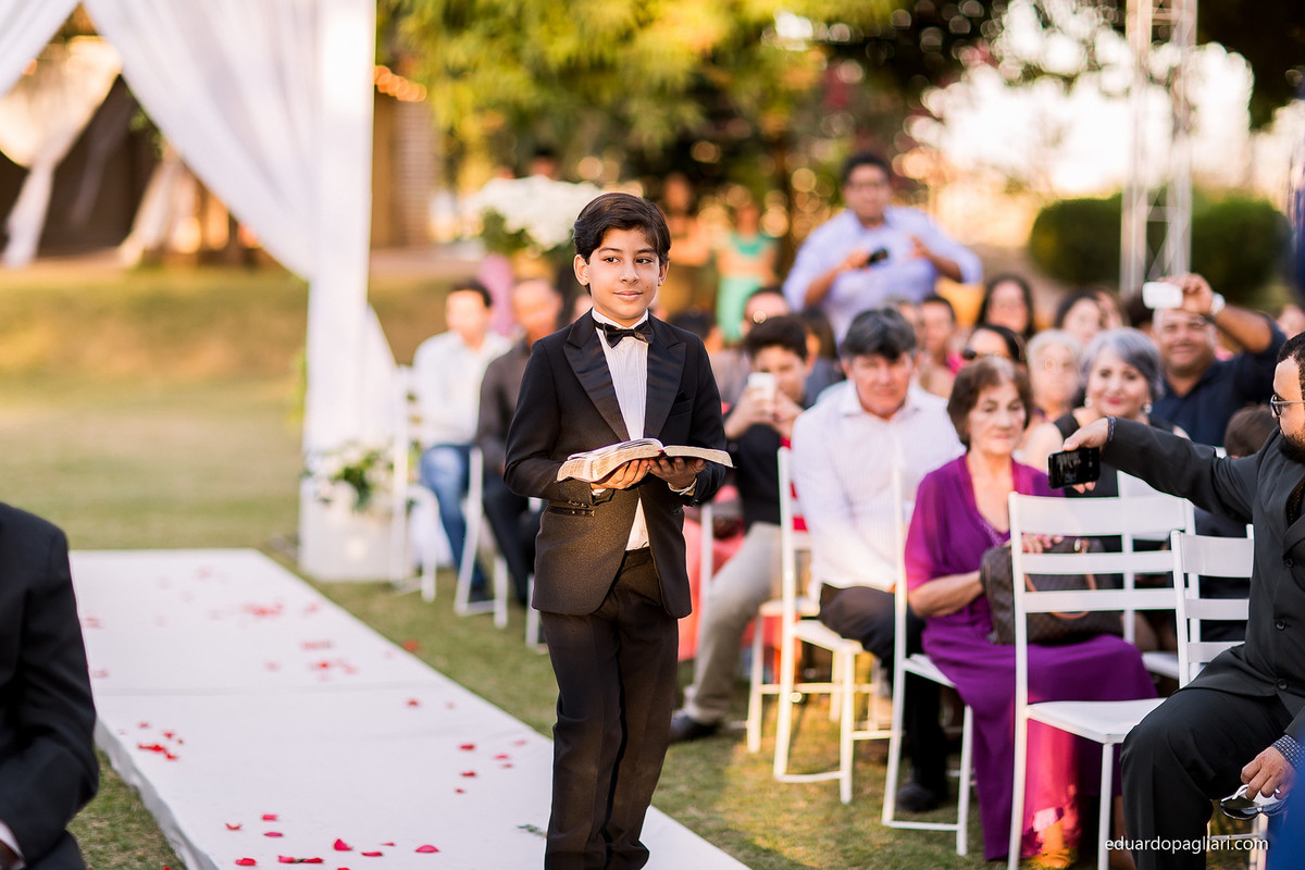 Ao ar livre, por do sol e com um clima rustico já seria um casamento perfeito, mas teve ainda mais, muito mais! Os votos sendo preparados pela noiva antes da cerimônia, musica especial cantada pelo noivo, as alianças trazidas por agentes secretos ao som de missão impossível, uau! Mas fora isso o que pairou pelo ar foi o sentimento que os dois conseguiram expressar um pelo outro, achei incrível..