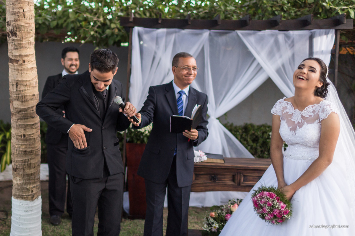 Mas para puxar os sorrisos e também gargalhadas o Magdiel, hilario, pegou sua "colinha" dos votos matrimoniais para dizer o quanto tudo isto foi importante para ele e para ela também.