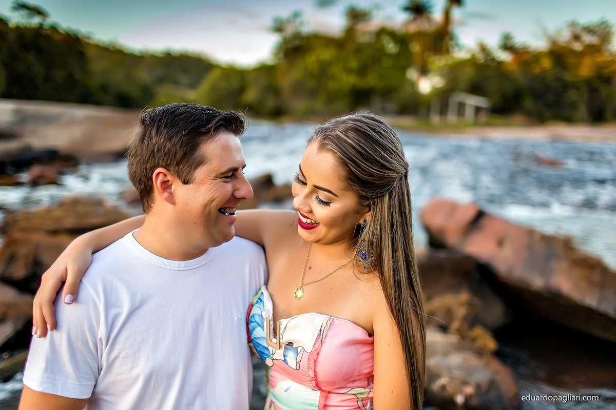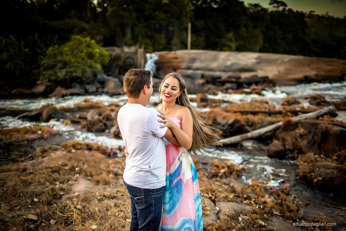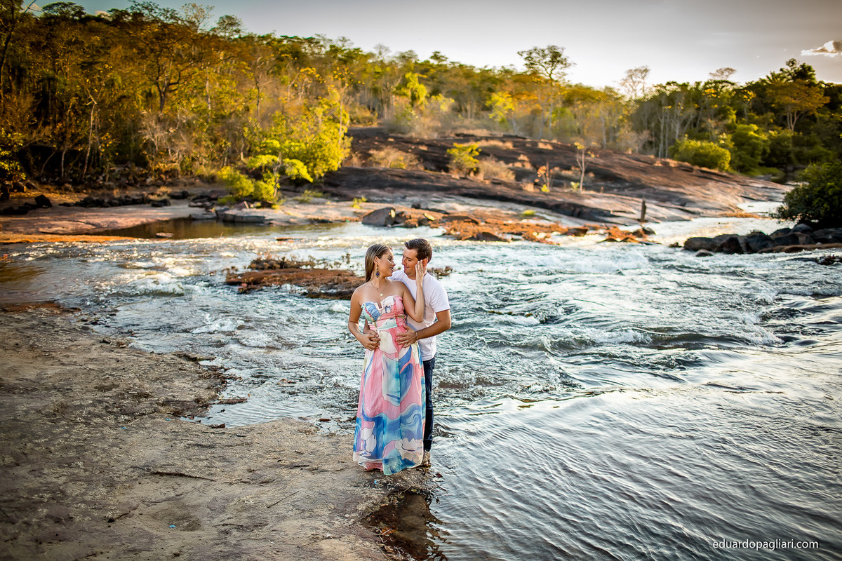 Este pre casamento foi marcado pelos contrastes, um dia e uma vegetação bem seca ao lado de belas corredeiras! Apos uns 200km começamos, mas valeu muito a pena! Mas o que combinou mesmo foi a beleza do casal com a beleza do local! Show, e como resultado, fotos lindas!