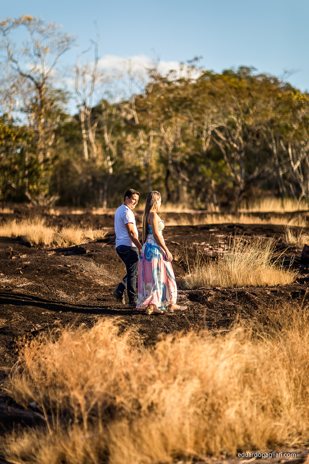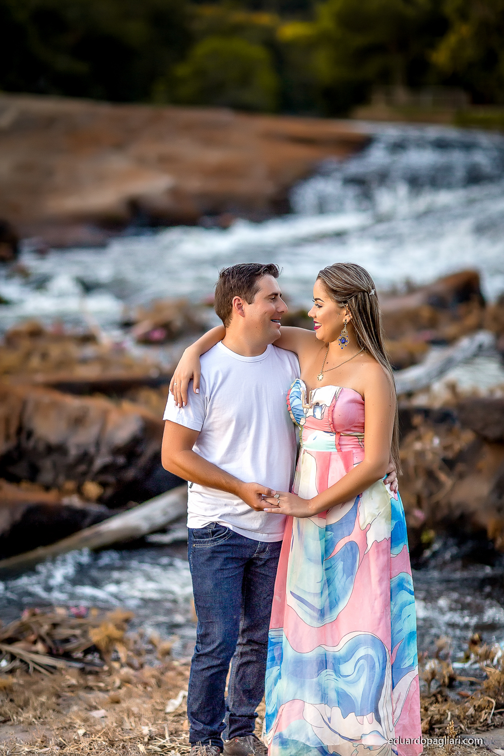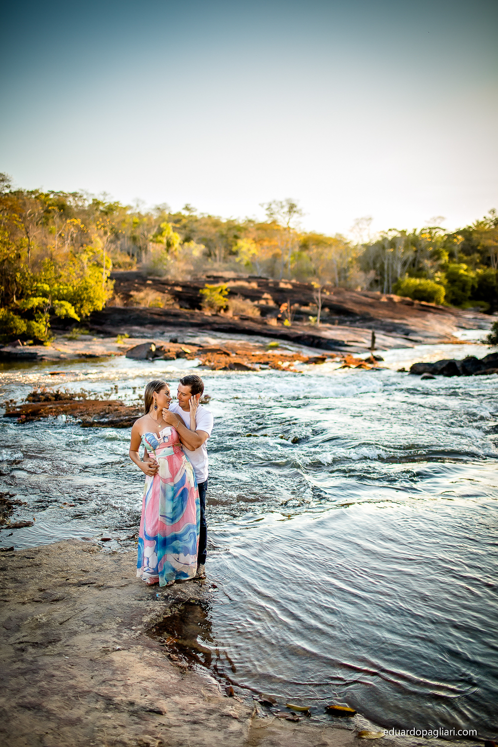 Este pre casamento foi marcado pelos contrastes, um dia e uma vegetação bem seca ao lado de belas corredeiras! Apos uns 200km começamos, mas valeu muito a pena! Mas o que combinou mesmo foi a beleza do casal com a beleza do local! Show, e como resultado, fotos lindas!